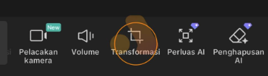 Pada capcut terdapat beberapa fitur Transformasi ("mengubah", yang berarti mengubah bentuk objek yang telah kita masukkan ke dalam Timeline) seperti mirror (cermin), rotation (rotasi), dan ubah ukuran: