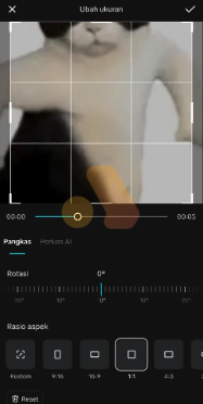Fitur ini memungkinkan kita dapat mengubah ratio dari footage video kita, ada ratio 1:1, 9:16, dan masih banyak lagi. Agar dapat mengubah ratio berikut langkahnya: